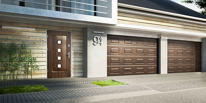для отдельного входа-выхода. Дверь гармонично сочетается с гаражными воротами, придавая фасаду дома завершенный вид