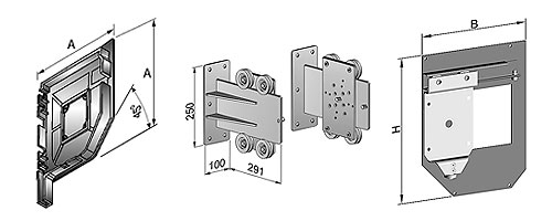 Стальные боковые крышки со встроенными каретками применяются для монтажа роллетных ворот с защитным коробом. Консоль BRC применяется для бескоробного типа монтажа роллетных ворот. Максимальная допустимая масса полотна – 200 кг.