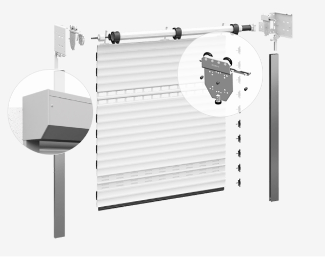 Короб роллетных ворот устанавливается на стену внутри помещения.